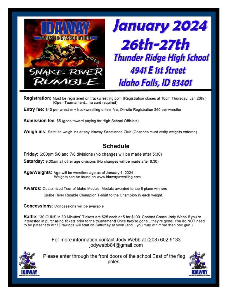 Click the link above to go to Trackwrestling.com and register for the Snake River Rumble 2024 (Tour of Idaho)